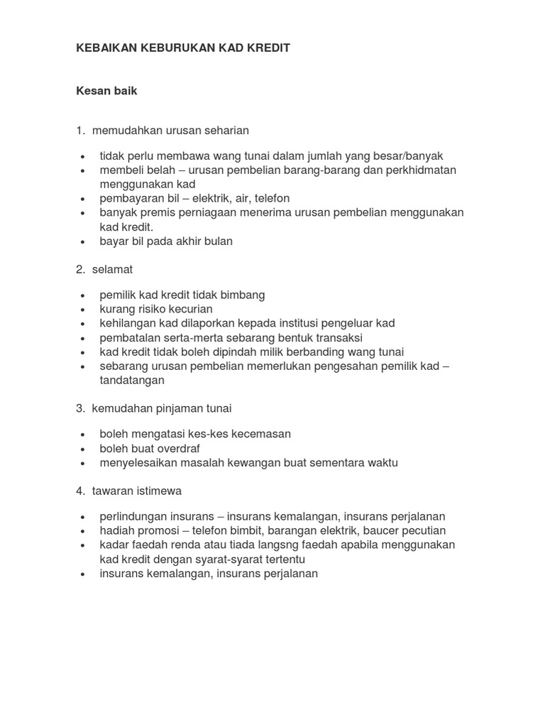 Credit And Debt Management. Karangan Kebaikan dan keburukan kad kredit. Kad kredit bukan sahaja mempunyai kebaikan.